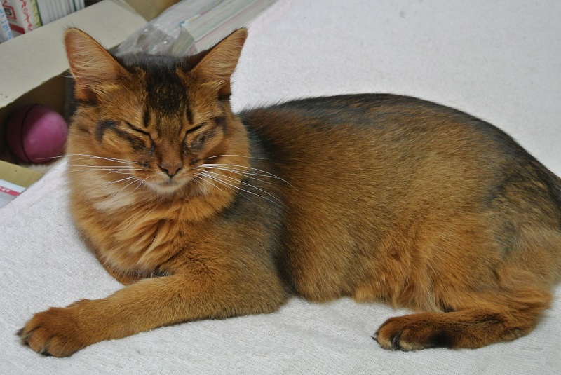 ↓↓この写真では判りづらいと思いますが、マフがふわふわになって、腹毛や尻尾の毛も伸びてきたので、秘書は「我が家にソマリがいる…」と思いつつ生死の境をさまよっていました(←大袈裟すぎw)