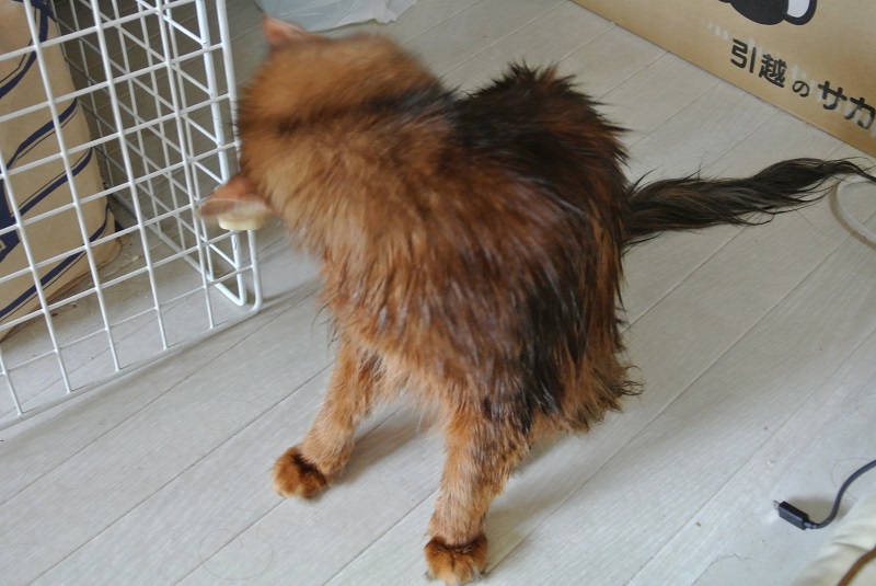 洗ってからも、お客さま用のタオルwで拭き拭き、猫用タオルでまた拭き拭き、それでもタオルがぐっしょり濡れるほどで、乾くまでも大変でした。