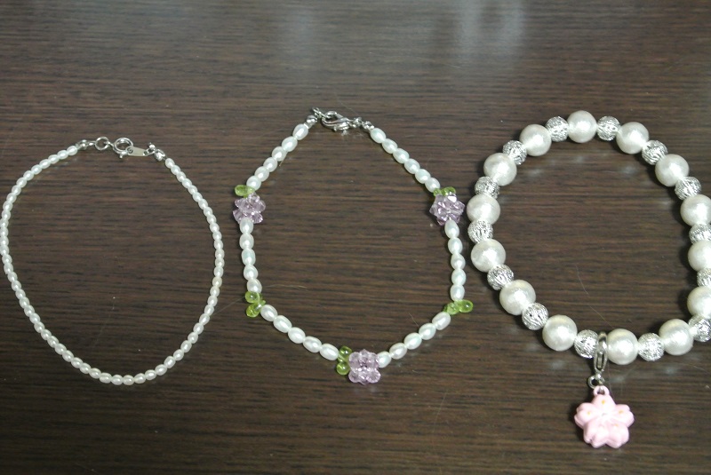 撮影しようとしても七実様がゴロニャンと甘えてくるのでうまく撮影できませんでしたが…、モノは一番右のコットンパールと銀色の透かし玉のものです。