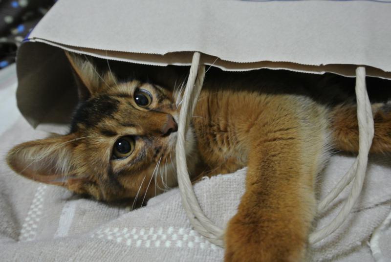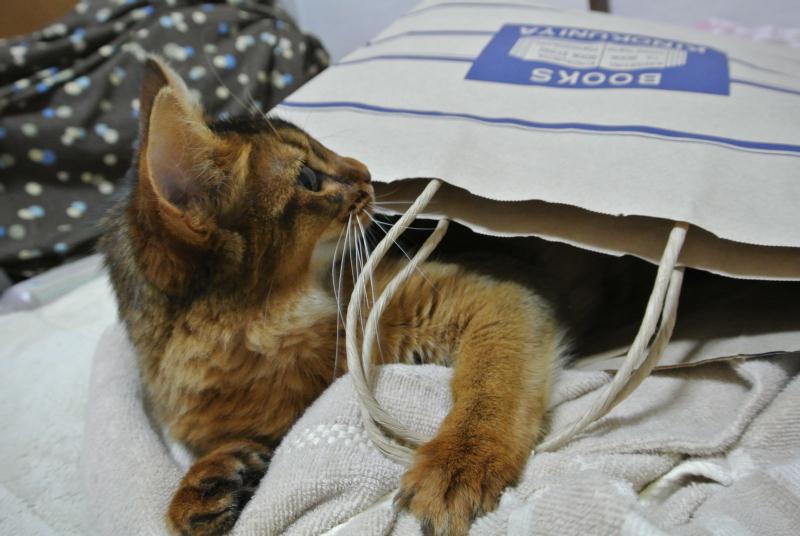 七実様、ダンボールにはあまり入らないのですが、紙袋はお気に召した様子。