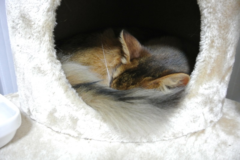 前記事で「七実様が一緒にネンネしてくれない」とボヤきましたが、その後も一緒にネンネしてくれる気配は全くなく、とりあえず夜寝ているのは主にキャットプレイキューブの中、と判明いたしました。