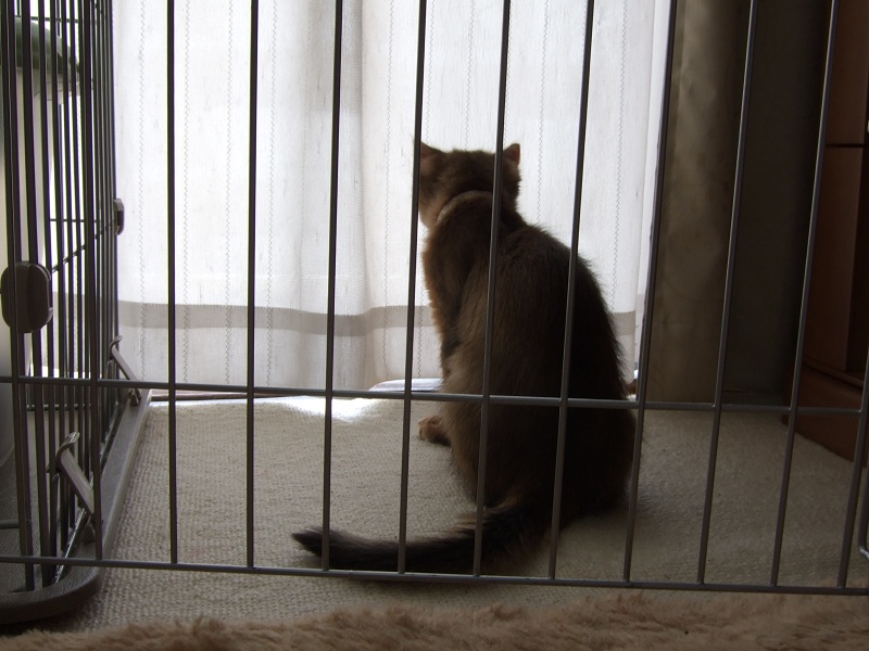 昼頃、お外で子ども達が元気に遊んでいるのをベランダ越しに見てる。