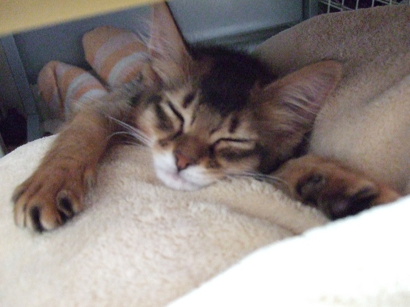 ちなみに寝てばっかりでカリカリがあまり減っていなかったので、ケージに入れて寝直しましたw