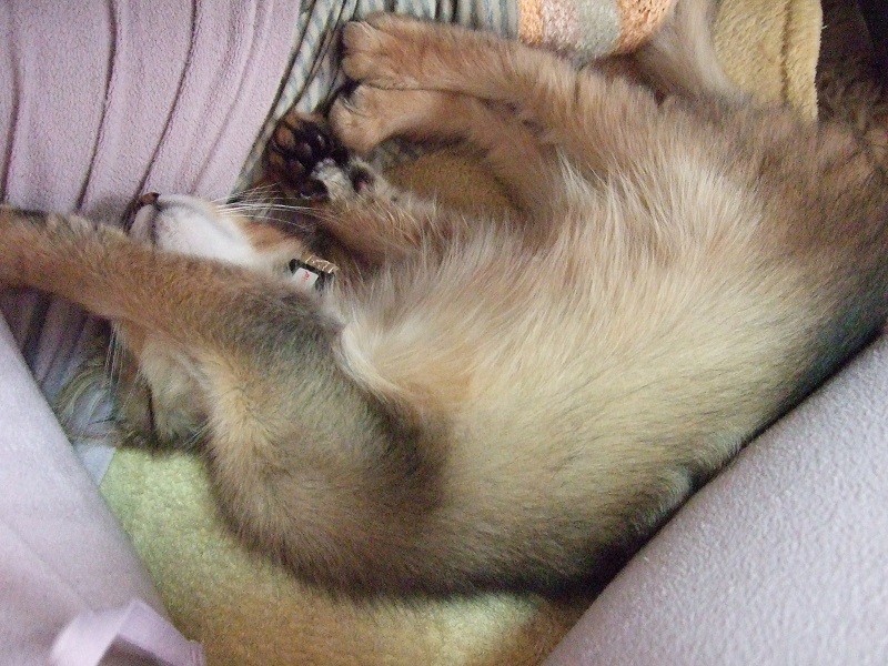 午前中、七実お嬢様は秘書めのマイクロファイバー膝掛けの上で気持ちよさそうに眠っておられました。