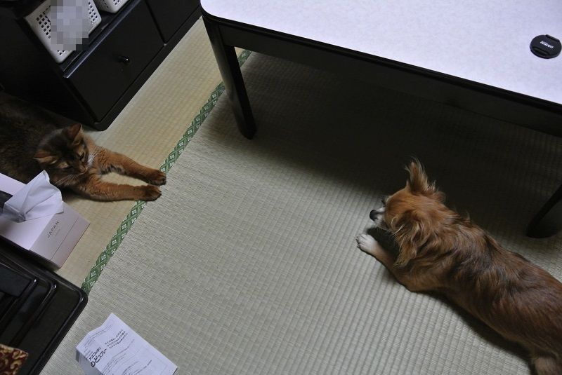 さて、だいぶ成長した今、どういう反応をするのか楽しみだったのですが、相変わらず器が大きいというか、猫でも受け入れてくれ、「一緒に遊ぼうよ♪」と誘ってくれるほどでした。