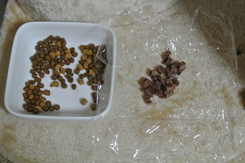 缶詰がなくなった翌日、いつものようにカリカリを準備して「はい、どうぞ♪」と差し出したところ、「コレジャナイ」っていうお顔をなさり、「缶詰ちょーだい」としきりに台所に誘導しようとする七実様。