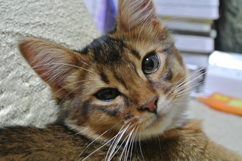 ちょっと触ってみましたが、まだ簡単に取れそうにないのと、本猫が嫌がっていたのでやめました。