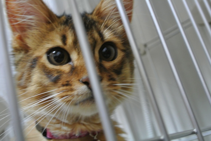ケージに入っていただいた七実様から、「きゅ~ん、きゅ~ん」と非難の声があがりますが、無視です。
