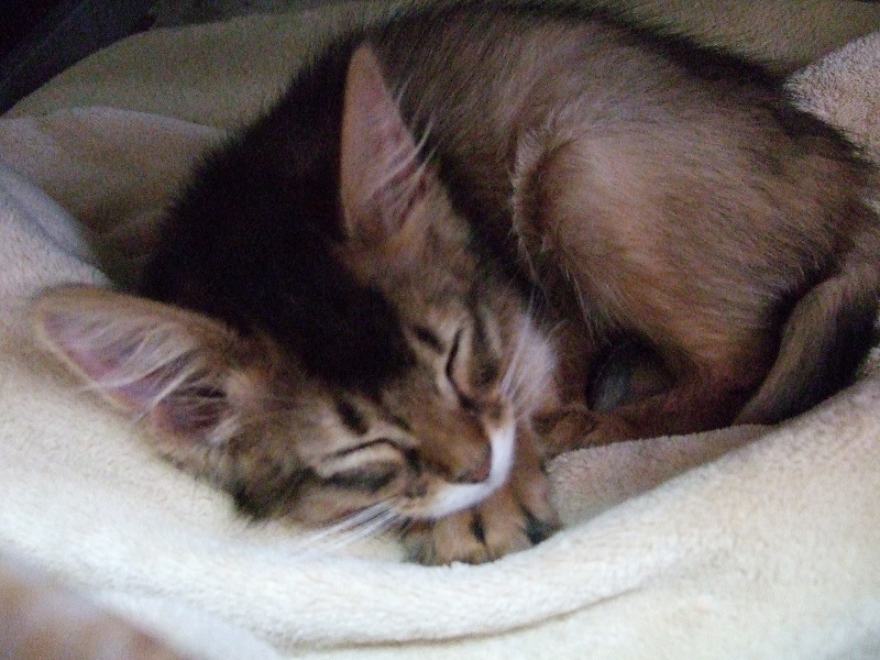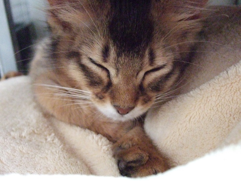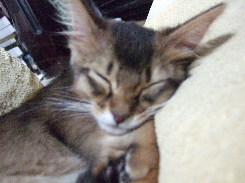 ちなみに寝てばっかりでカリカリがあまり減っていなかったので、ケージに入れて寝直しましたw