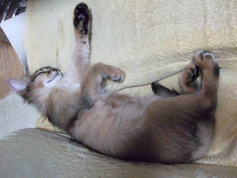 ちなみにこれを書いている今も、一人遊びに飽きたらしく、秘書の膝の間にハマッて毛繕いをしております。