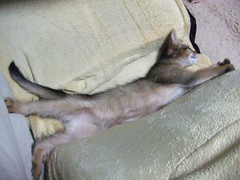 ・昨日は朝ご飯→じゃらしでの一人遊びなどをしたのち、秘書のお膝でお昼寝。