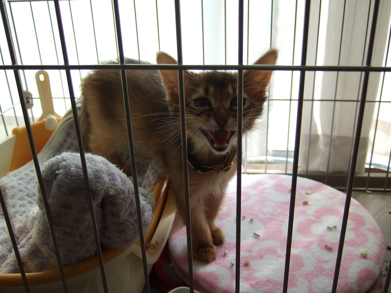 夜になって、七実様をご自宅(ケージ)に入れようとすると、毎晩嫌がるのですが、入ってしまえば鳴きながらも諦めてくれます。