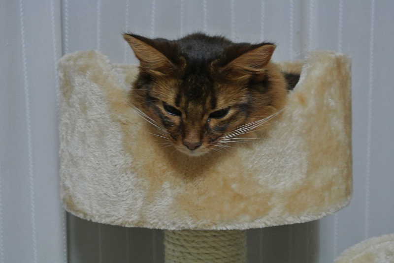 最初は見慣れないものに戸惑っていた七実様でしたが、徐々に慣れてきたようで、てっぺんのカップでも寝るようになりました。