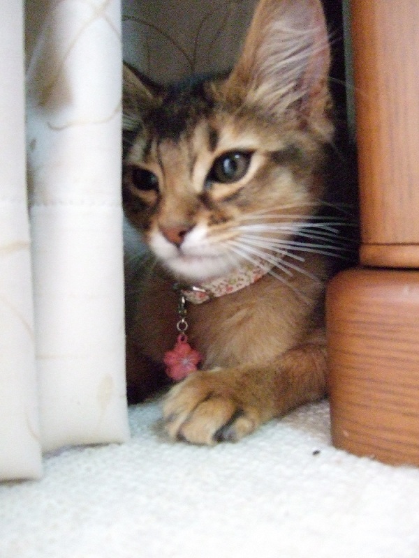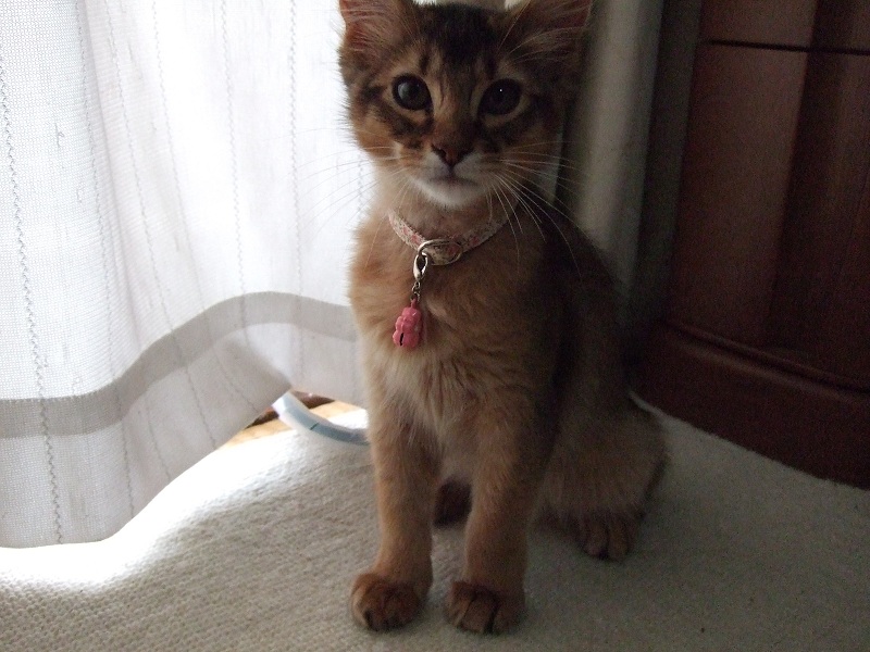 でも居場所が判らないと、間違ってお外に出ちゃった!? とか、寒いのに隙間に入り込んで出て来ない…などの心配があるので、「ごめんねー」と言いつつ着けています。
