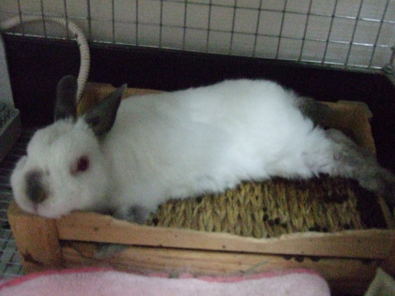 さて、七実様のケージを見ていたわたくし、ちょっと思いつきまして、外に置いてあった猫砂入れ(元々は先代うさぎのために買ったストッカー)を、ケージの中に入れて、階段代わりに使っていただくことに致しました。