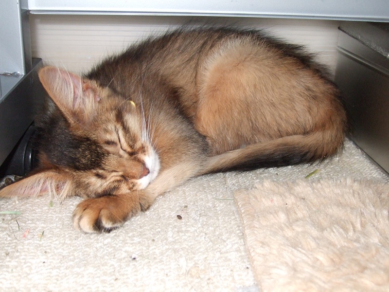 それにしても、いつもなら秘書のお膝でお眠りになる七実様が、今日はPC机下の奥に入り込んで眠ってらっしゃいます。