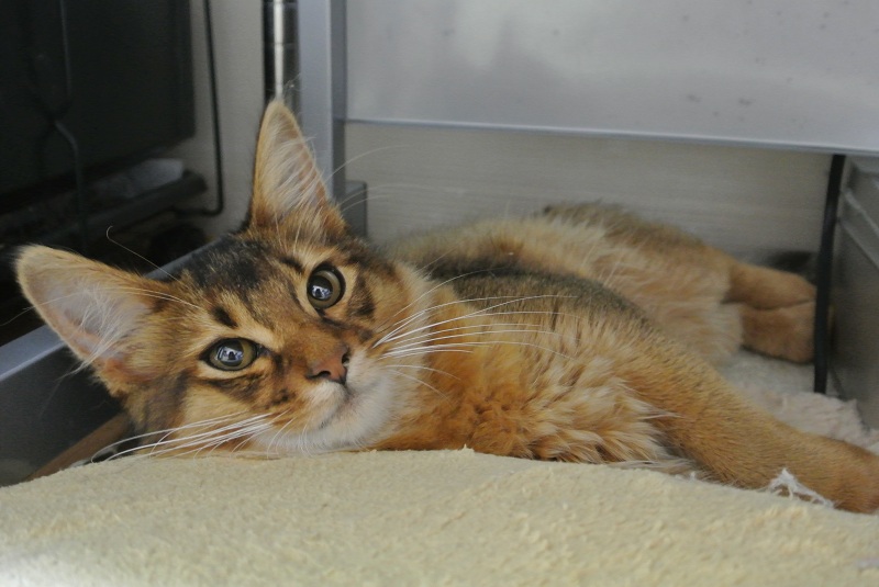 ちょっと触ってみましたが、まだ簡単に取れそうにないのと、本猫が嫌がっていたのでやめました。